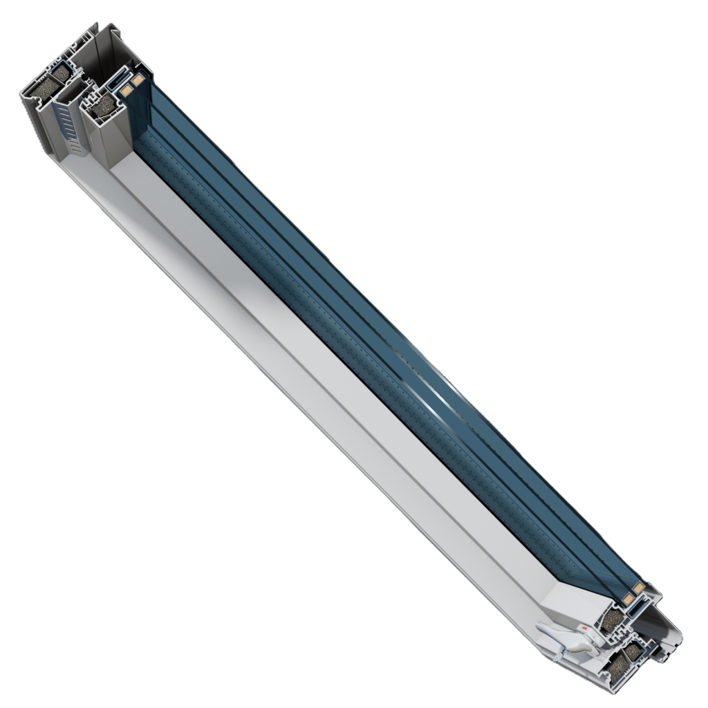 Dwuszybowy pakiet E2 z argonem oraz powłoka niskoemisyjna gwarantują wysoką energooszczędność (Uw = 1,2 W/m²K).
