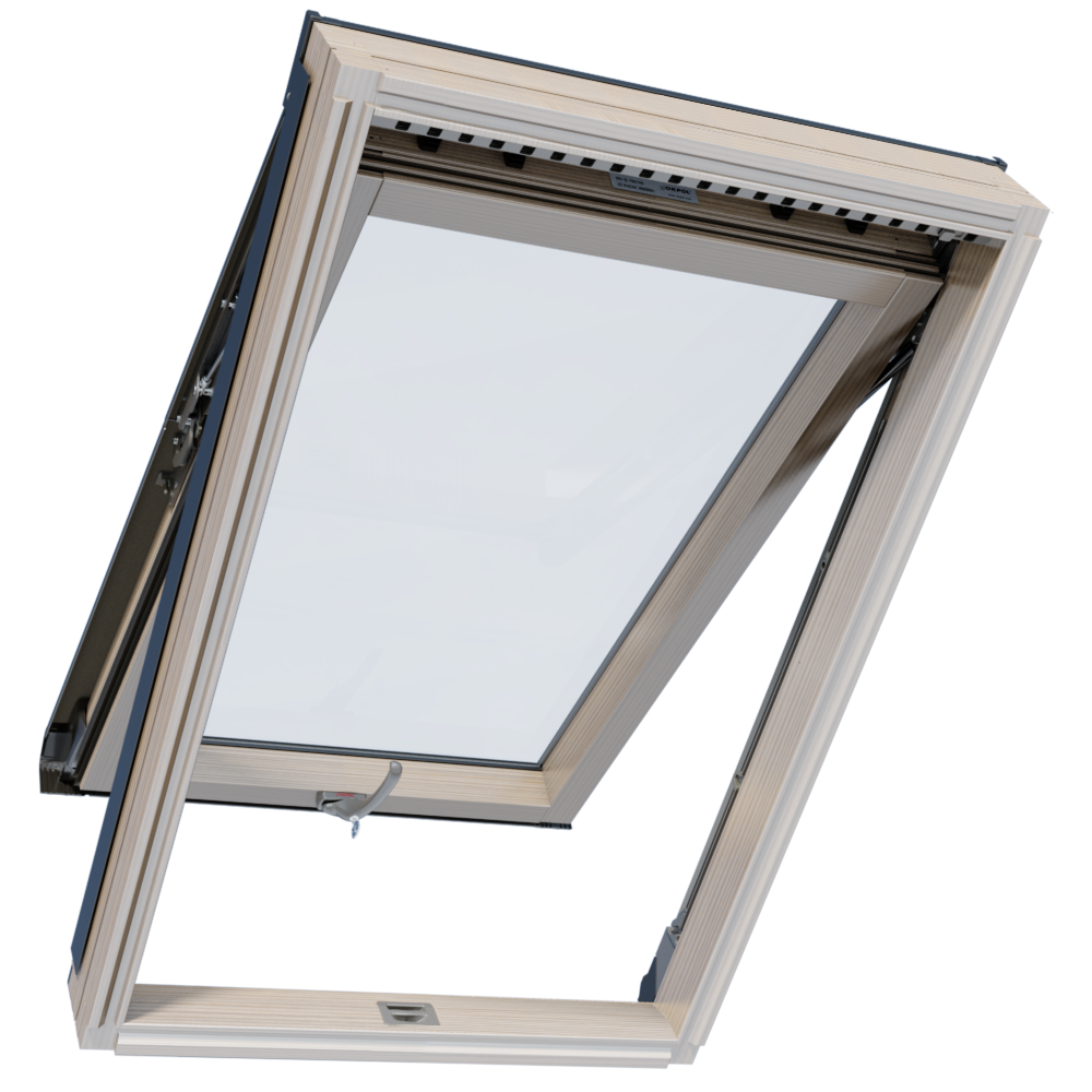 Idealny wybór dla poddaszy o kącie nachylenia 15°–65°. Dzięki funkcji przesuwnej umożliwia łatwe czyszczenie szyb od wewnątrz i maksymalny komfort użytkowania.